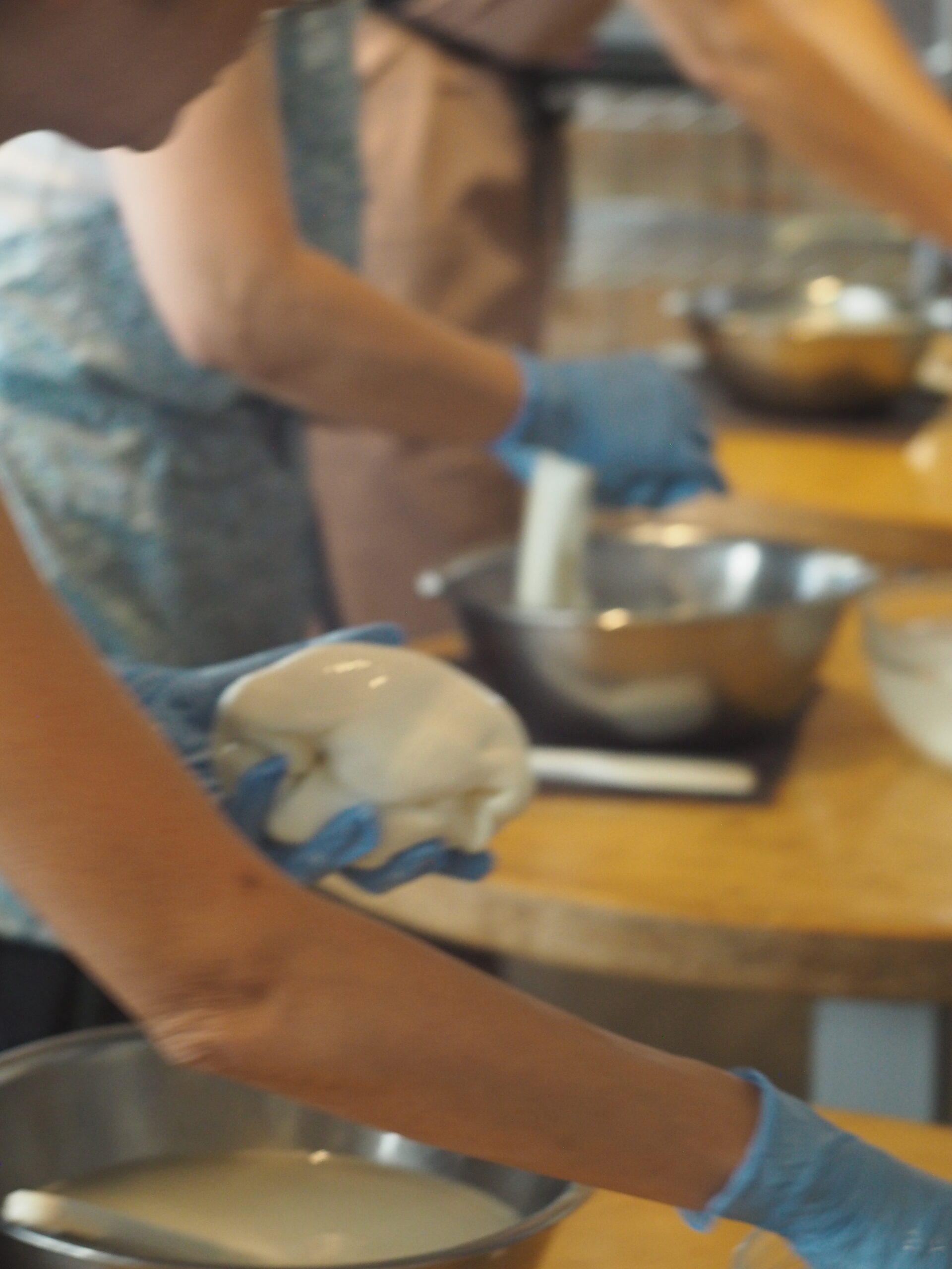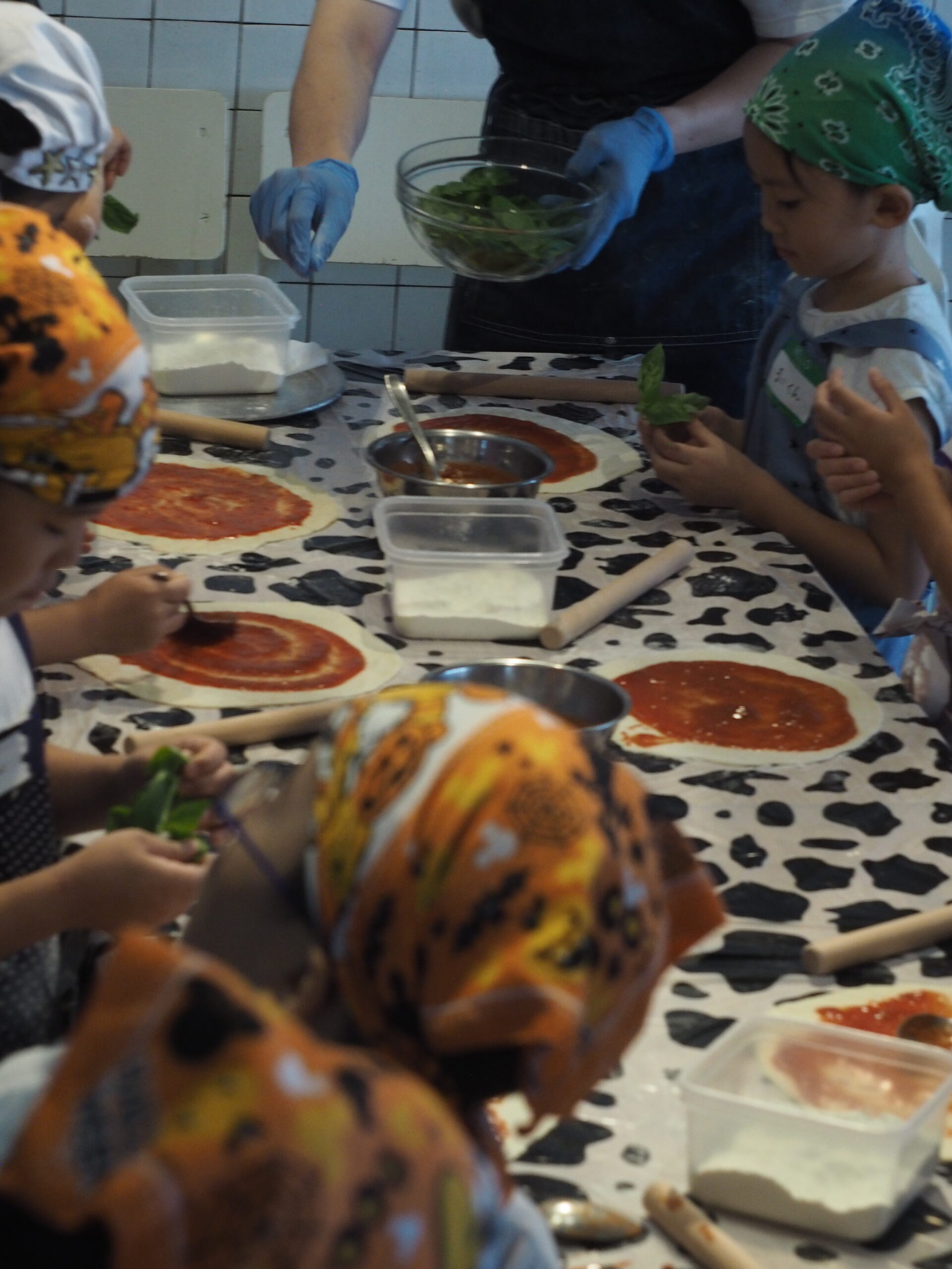 ママ達はモッツァレラ、キッズ達はピッツァづくりを体験いただきました。