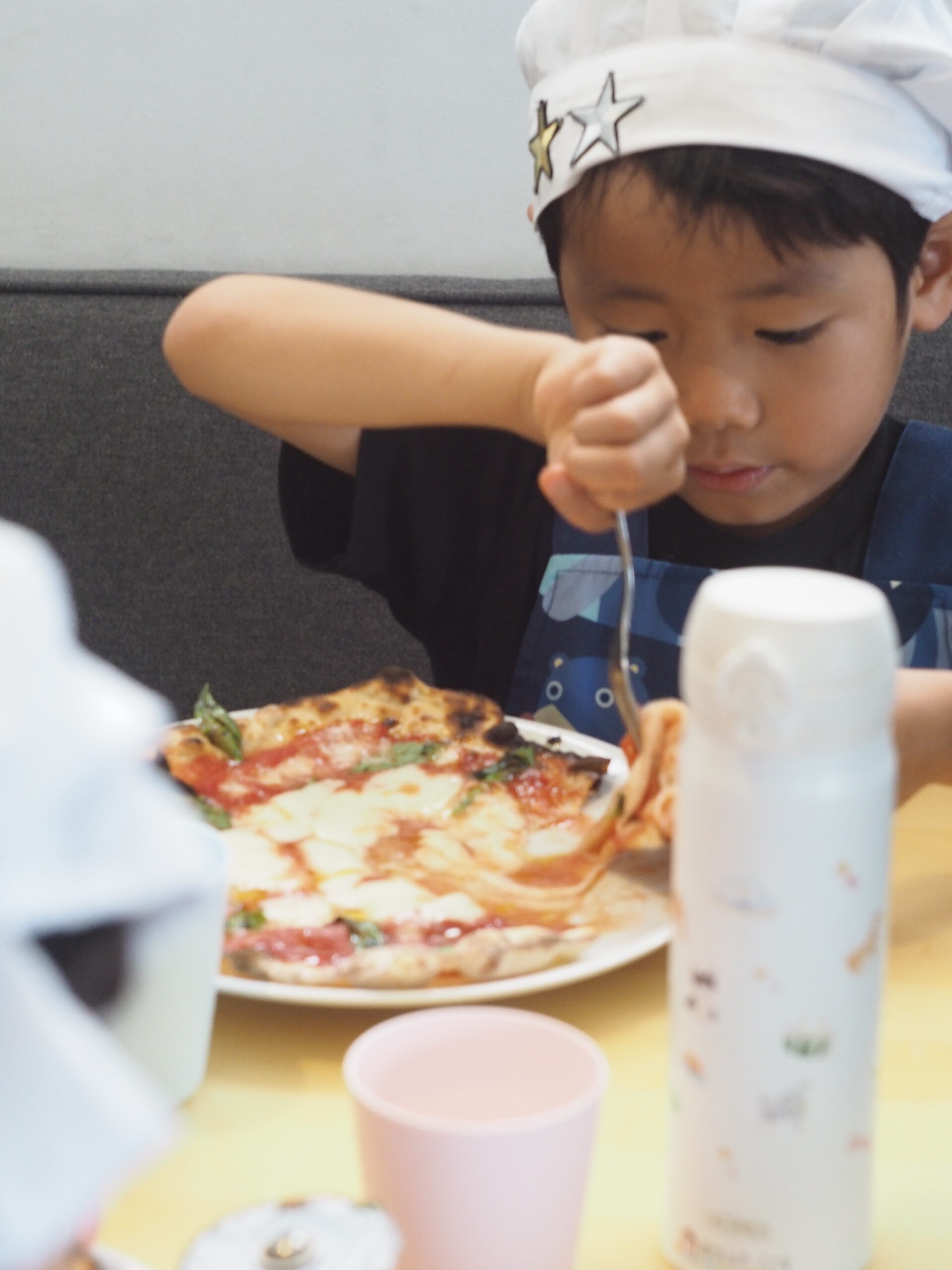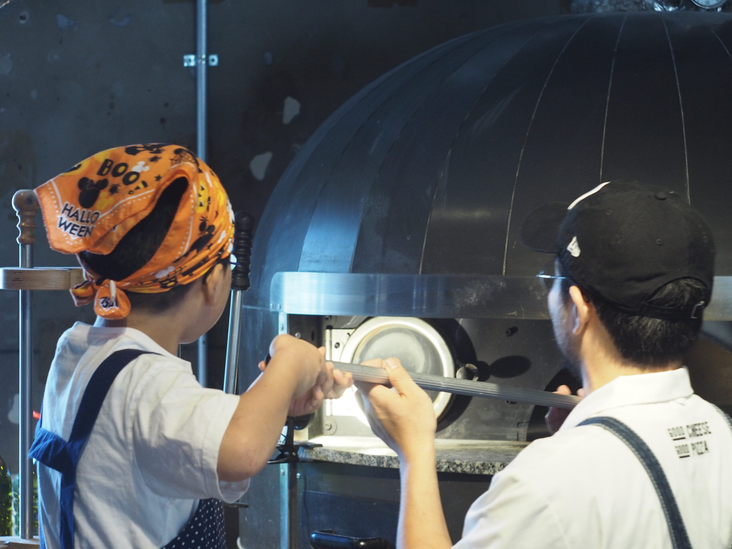 最後はキッズ達、自らピザ窯へ入れて焼き上げました。